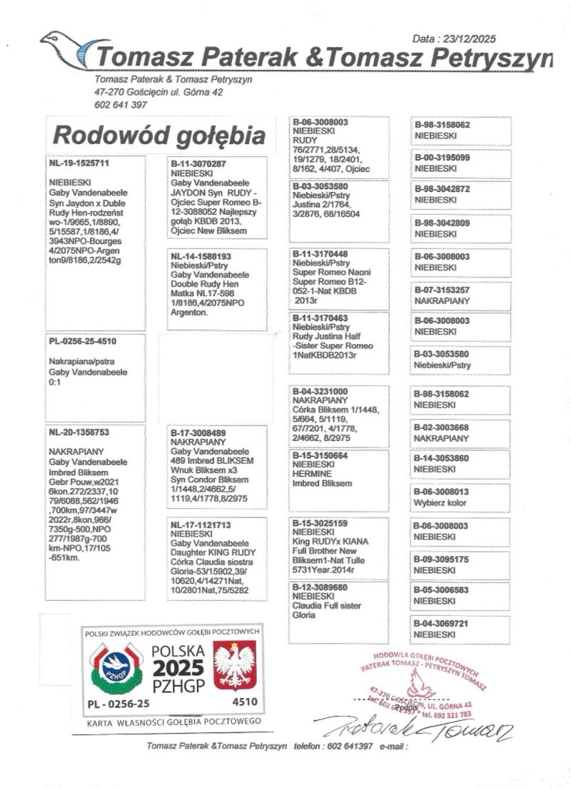 TYLKO KUP TERAZ Oryginalny gołąb z hodowli Tomasz Paterak & Tomasz Petryszyn. Więcej informacji pod nr tel. 692321783, 602 641 397 Możliwy darmowy odbiór na Wystawie Ogólnopolskiej Katowice.