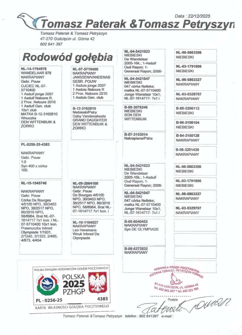 PL-0256-25-4383 – Syn Jonge Wandelaar x Córka Bourges 100% Gebr. Pouw oryg. Tomasz Paterak & Tomasz Petryszyn TYLKO KUP TERAZ