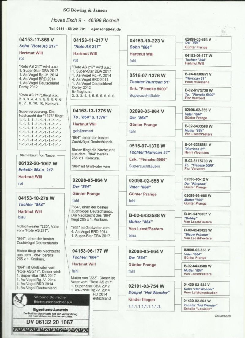 Mamy Państwu do zaoferowania gołębia PL-0318-25-7261 - Hartmut Will Rote As 217. Więcej informacji pod numerem 502 283 650.