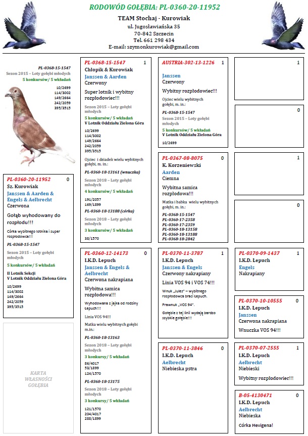 PL-0360-20-11952 - TEAM Stochaj - Kurowiak - Córka wybitnego lotnika 1547 - Super rozpłodowa samica