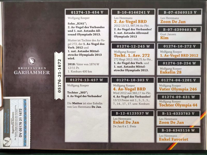 DV-05176-21-1672 - oryg. Brieftauben Garhammer - 100% Wolfgang Roeper - super budowa