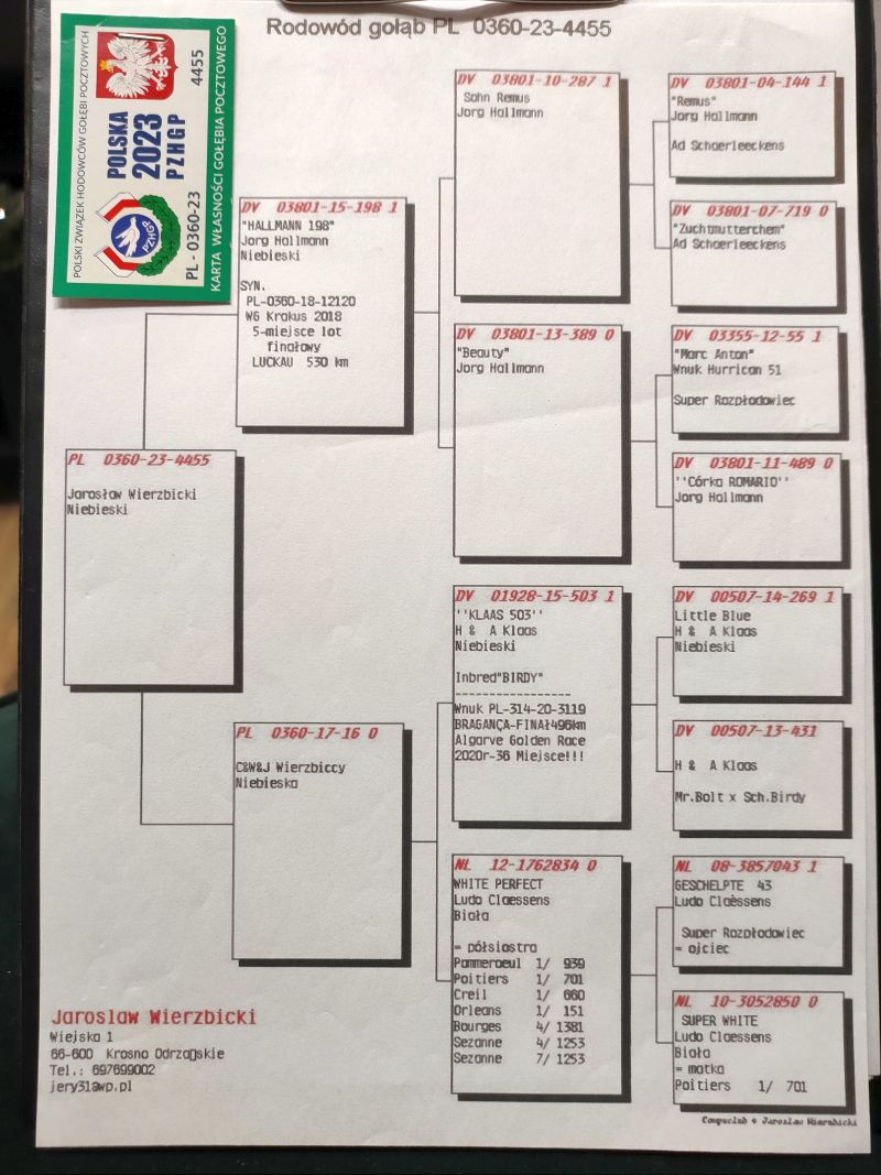 PL-0360-23-4455 oryg. J. Wierzbicki - Linia gołębi J. Hallmann - Romario 338