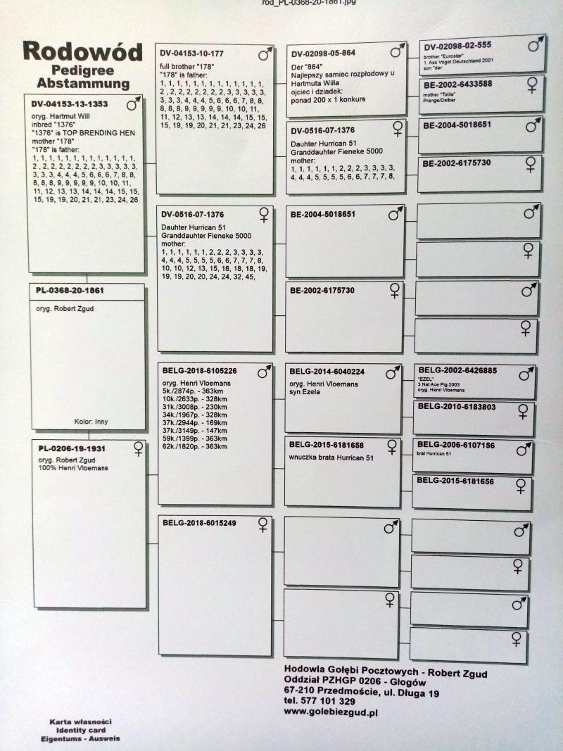 Aukcja grzecznościowa dla hodowcy, który z powodu choroby zmuszony jest sprzedać zakupione do rozpłodu gołębie. UWAGA Uwaga: zagubiona gdzieś karta własności gołębia, jeżeli się odnajdzie zostanie dostarczona. Odbiór do ustalenia, ale najlepiej na Ogólnopolskiej Wystawie w Katowicach. W innym przypadku koszt wysyłki pokrywa kupujący. Więcej informacji w rodowodzie oraz pod nr 691783833