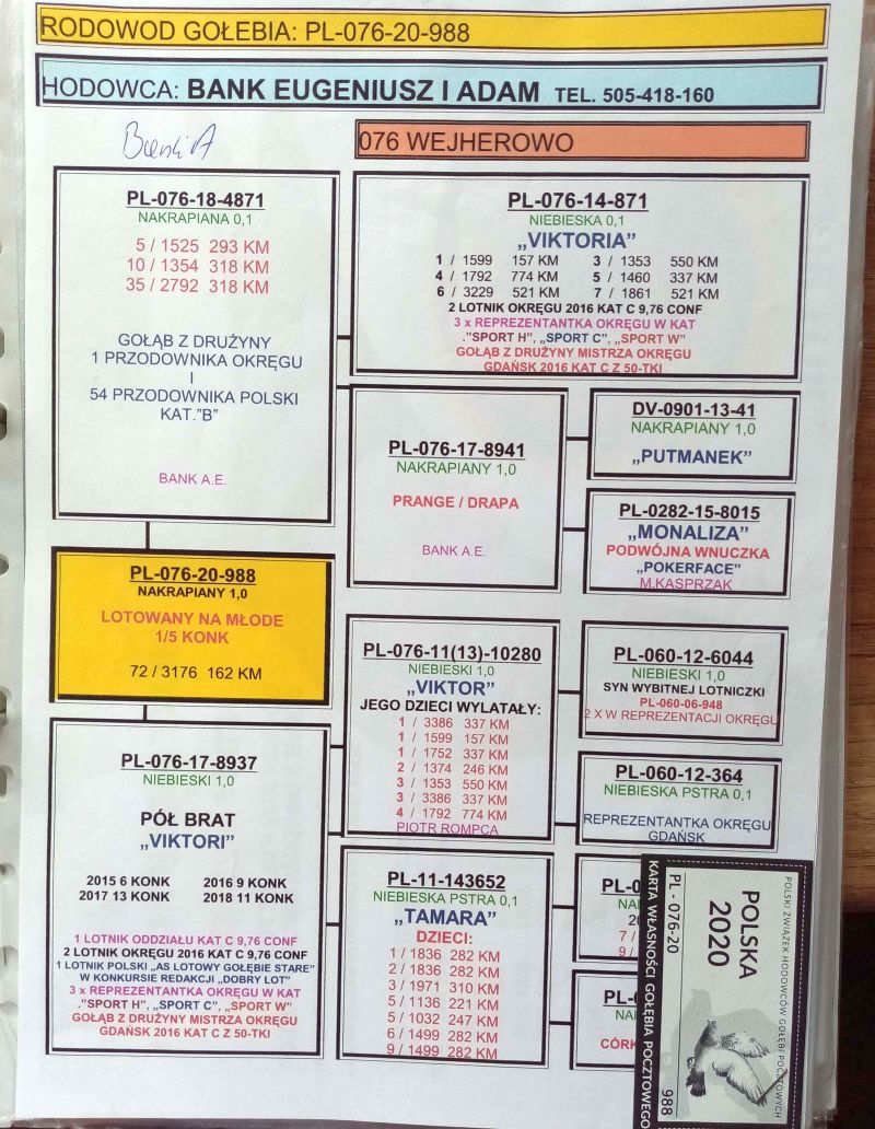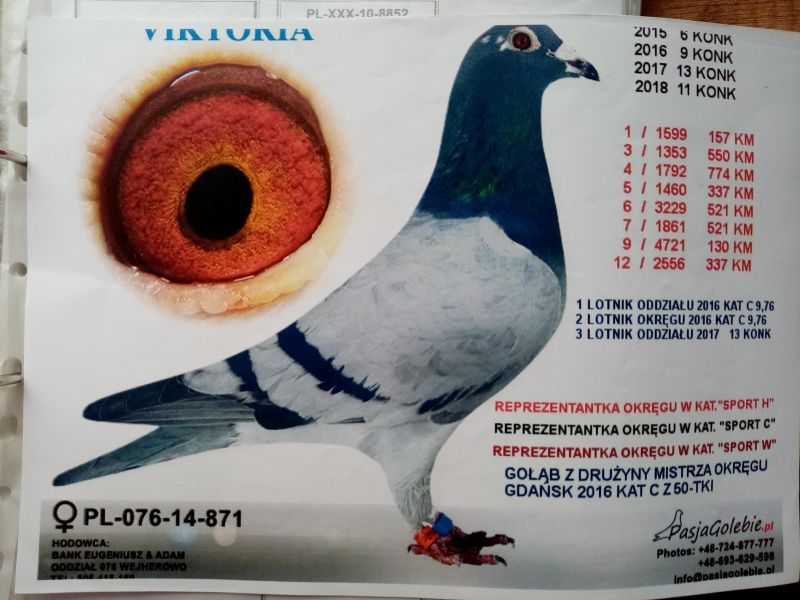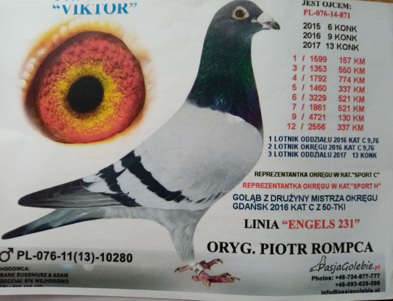 Aukcja grzecznościowa dla hodowcy, który z powodu choroby zmuszony jest sprzedać zakupione do rozpłodu gołębie. Oryg Eugeniusz i Adam BANK Przodkowie tego gołębia to super lotniki w rywalizacji Oddziałowej, Okręgowej oraz Ogólnopolskiej. Lotowany na młode Uwaga: zdjęcie gołębia z roku 2020, zainteresowanym mogę przesłać aktualne zdjęcie Odbiór do ustalenia, ale najlepiej na Ogólnopolskiej Wystawie w Katowicach. W innym przypadku koszt wysyłki pokrywa kupujący. Więcej informacji w rodowodzie oraz pod nr 691783833