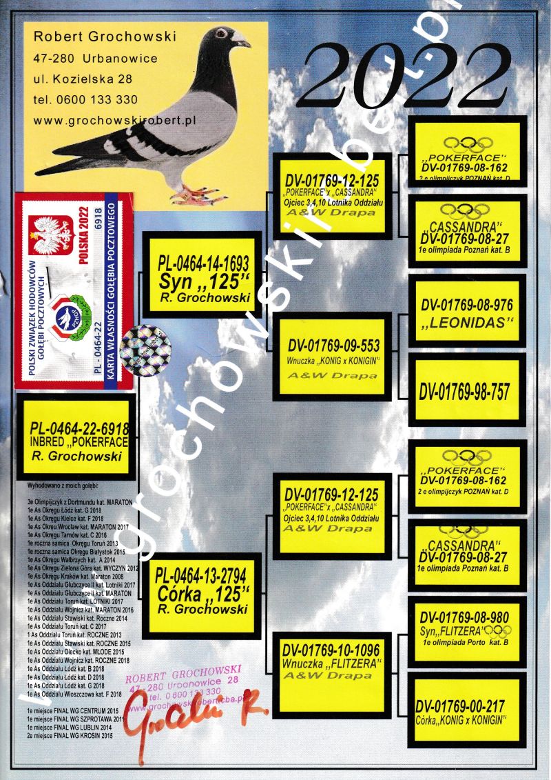 Oryginalny gołąb z hodowli - Robert Grochowski. Więcej informacji w rodowodzie oraz pod numerem telefonu: 790 818 700