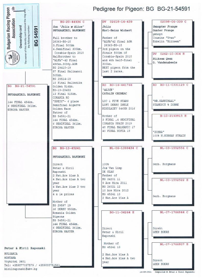 PL-0217-25-7903 *** 100% Petar & Kiril RAPONSKI *** TOP *** BUMERANG x inbred JULIA i ALICE *** odbiór m.in. WYSTAWA OGÓLNOPOLSKA ***