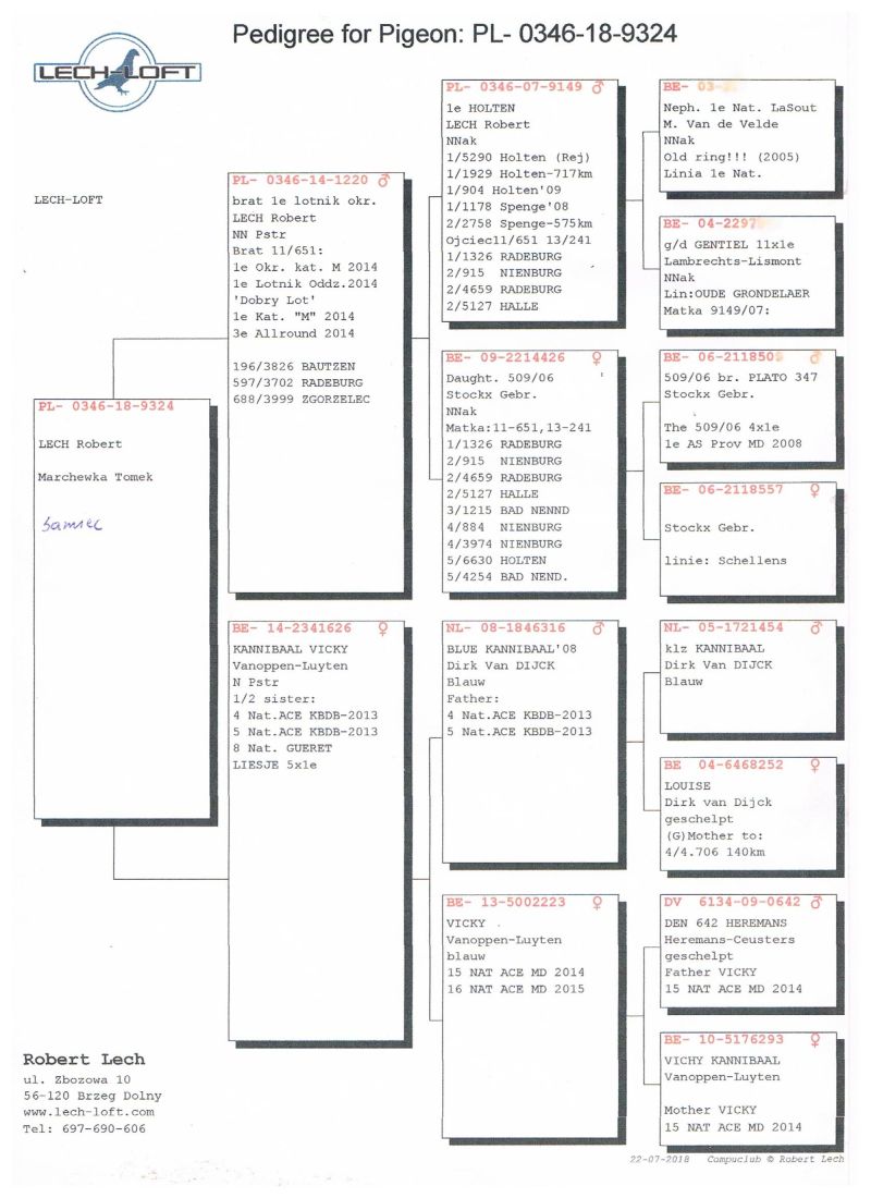 ***** UWAGA !!!!! Możliwy odbiór osobisty lub dostawa realizowana przez kuriera w cenie 160 zł !!!!! Możliwy także odbiór na wystawie Ogólnopolskiej w Katowicach (sobota lub niedziela). UZGODNIENIE TELEFONICZNE !!!!! <<<<< UWAGA, GOŁĄB TO PRAWDOPODOBNIE SAMICA, NA POCZATKU GRUDNIA GOŁĄBEK ZUPEŁNIE WYPIERZONY >>>>> Oryginalny gołąb z hodowli Romana & Konrada Jaskulskich. Szczegóły pochodzenia w rodowodzie. Gołąb gotowy do sezonu lęgowego, zaszczepiony Columba PHA i Columba RP oraz przeciwko salmonellozie (Salmo PT). Więcej informacji pod nr tel.: 506 123 808. Wpłata za gołębia na konto po zakończeniu aukcji. Możliwy odbiór osobisty lub dostawa realizowana przez kuriera w cenie 160 zł. Możliwy także odbiór na wystawie Ogólnopolskiej w Katowicach (sobota lub niedziela).