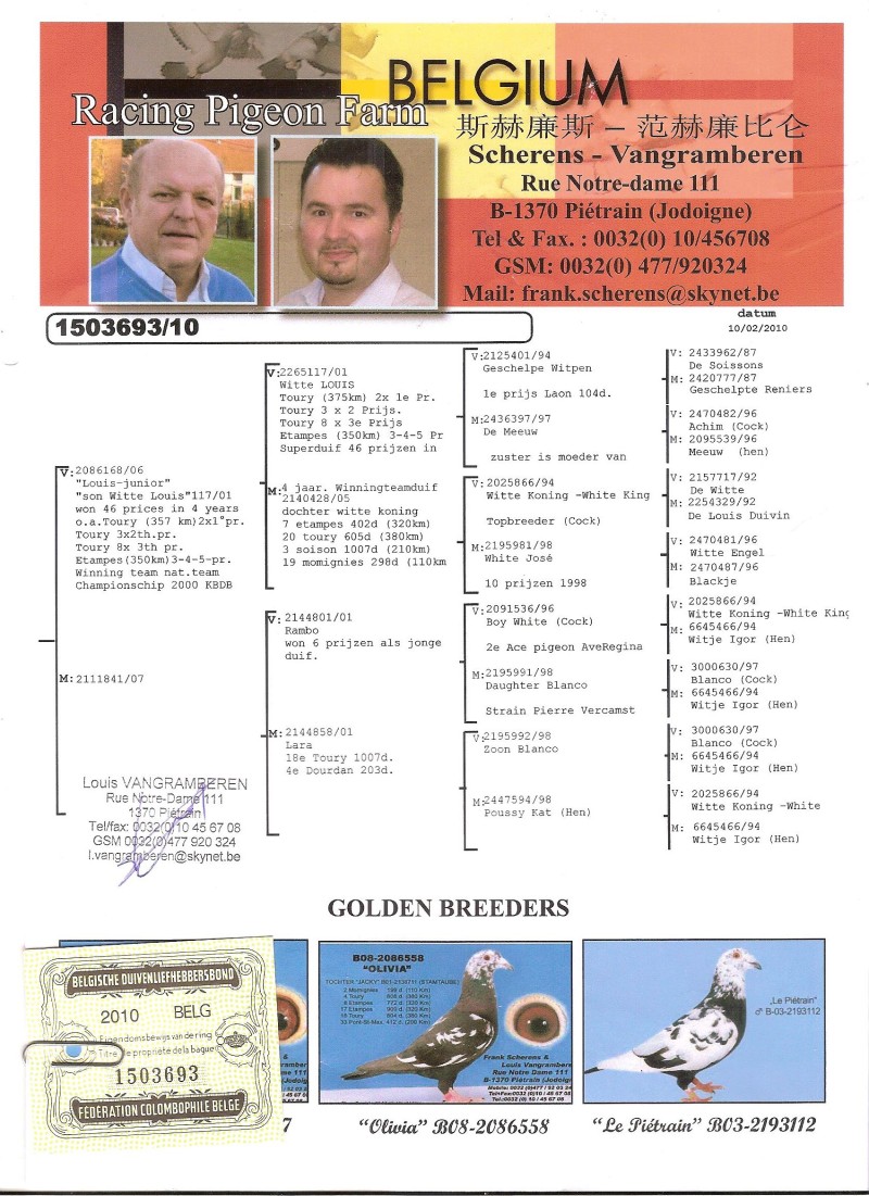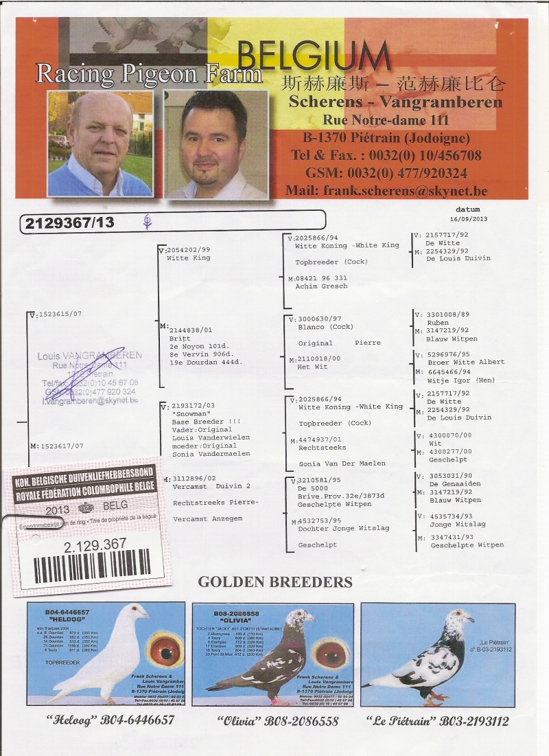 Oryginalny gołąb z hodowli Pawła Mikołajczaka (Scherens-Vangramberen). Szczegóły pochodzenia w rodowodzie. Wysyłka kurierem 160zł Więcej informacji pod nr tel.: 782069207