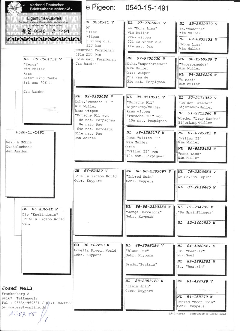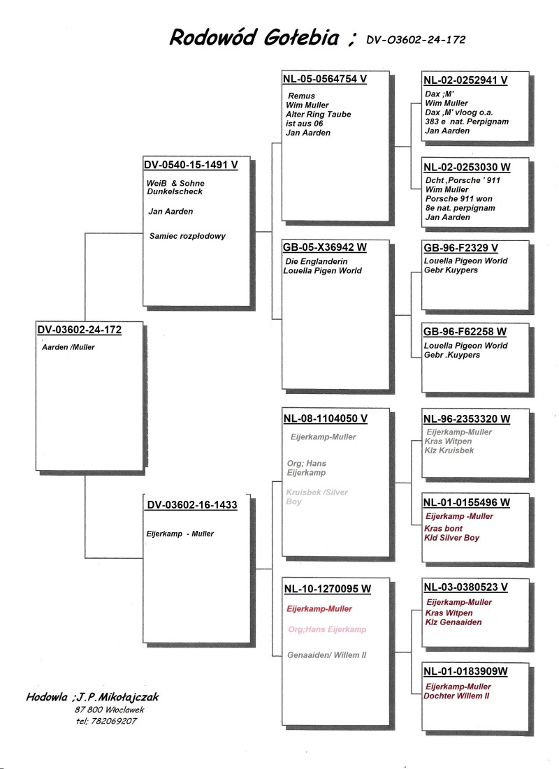 Oryginalny gołąb z hodowli Pawła Mikołajczaka (Aarden-Muller). Szczegóły pochodzenia w rodowodzie. Wysyłka kurierem 160zł Więcej informacji pod nr tel.: 782069207