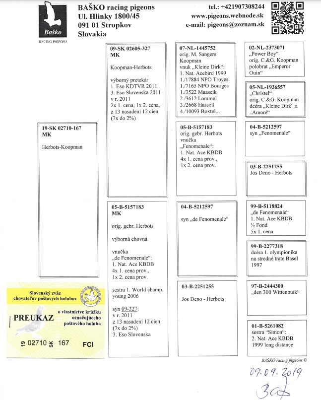 Oryginalny gołąb z hodowli L&R Baško. nabyty bezpośrednio od tego hodowcy. Gołąbek wyhodowany na zamówienie z połączenia 3. AS Słowacji z 2011roku sparowany na własną matkę. Syn 3 ASA SK i jednocześnie jego półbrat (Inbred De Fenomenale - matka sprzedawanego gołębia to wnuczka a zarazem siostra 1 World champ.young'06 od gebr.Herbots) Redukcja ptaków rozpłodowych. Kontakt 501 180 849. Odbiór osobisty na wystawie ogólnopolskiej w Katowicach w sobotę (10.01.2026). Istnieje także możliwość zorganizowania odbioru przez kupującego. Na innej aukcji do nabycia również jego brat o numerze 168.