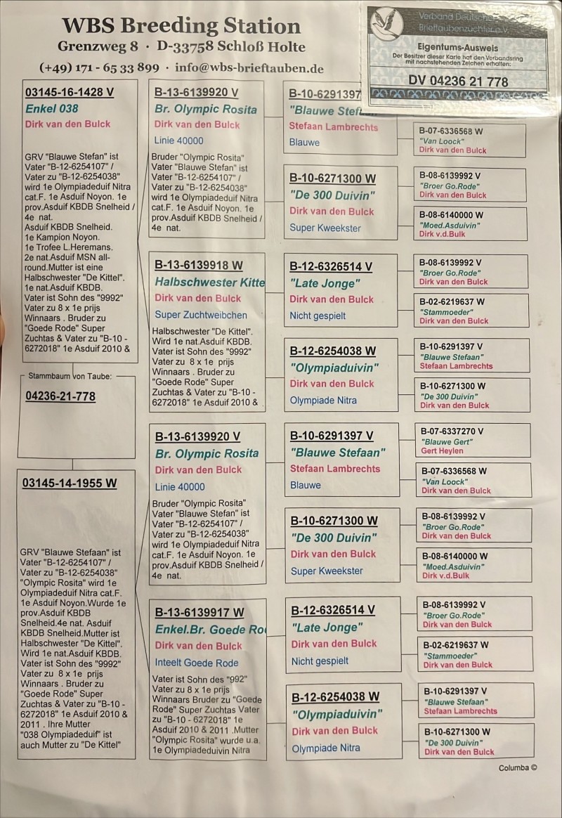 DV-04236-21-778 - oryg. WBS Breeding Station płowy samiec- podwójny wnuk brata Olimpic Rosity i podwójny prawnuk Olimpic Rosity - mocny inbred Blauwe Stefan.