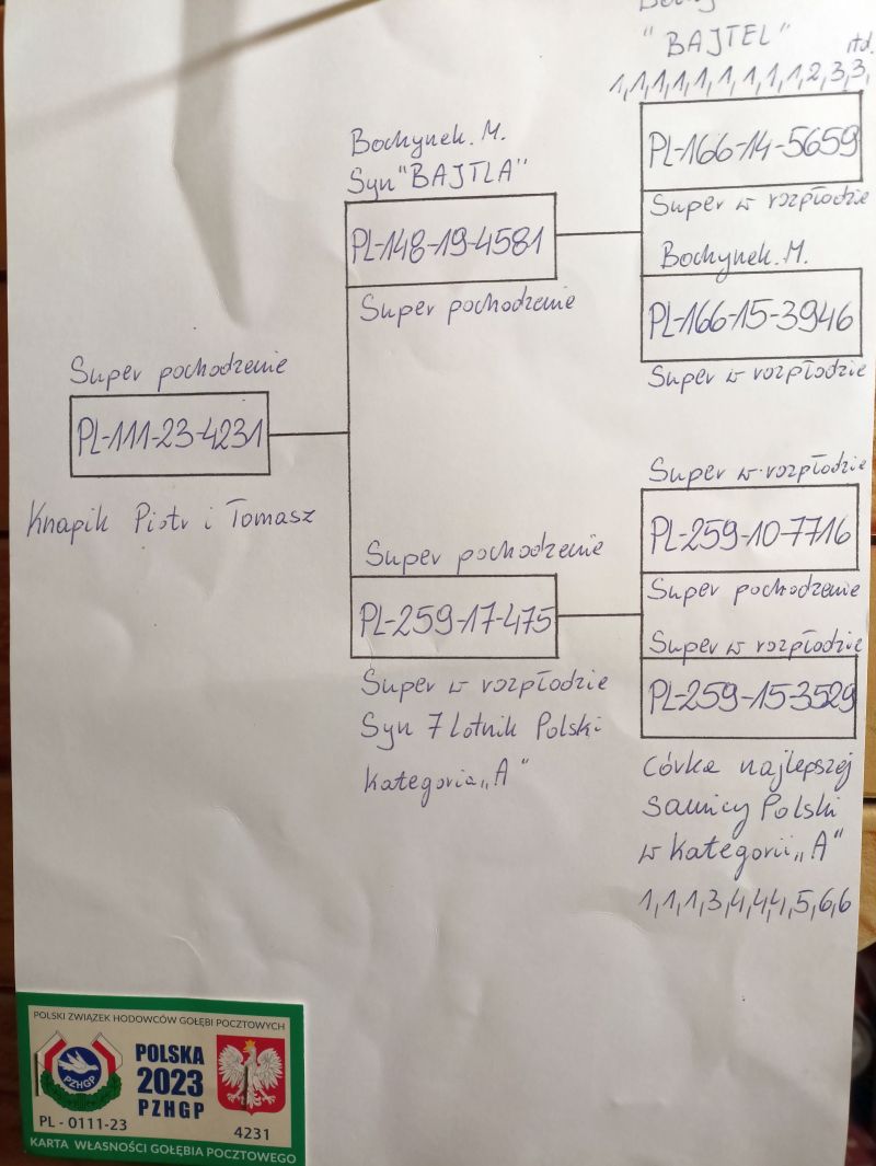 Oryginalny gołąb z hodowli Piotr i Tomasz Knapik. szczegóły pochodzenia w rodowodzie. Więcej informacji pod nr tel.: 733973208