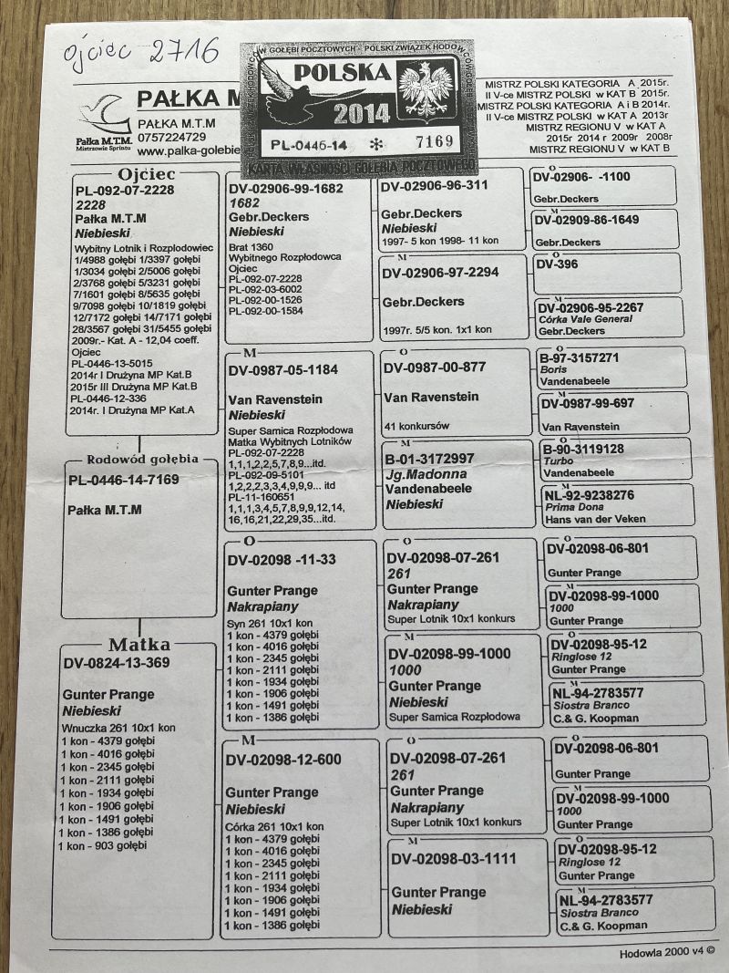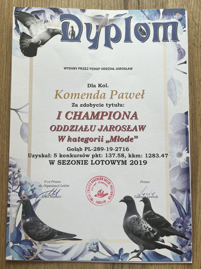 Oryginalny gołab z hodowli Paweł Komenda 1 Lotniczka Oddziału; I Champion Oddziału Jarosław. Więcej informacji w rodowodzie i dokumentacji. kontakt: 530131812 - z powodu wykonywanej pracy najlepiej SMS Wysyłka kurierem ok. 150zł