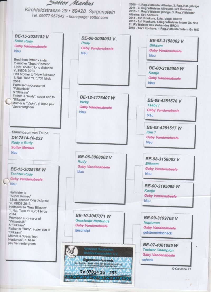 DV-07814-16-233 INBRED RUDY G VANDENABEELE