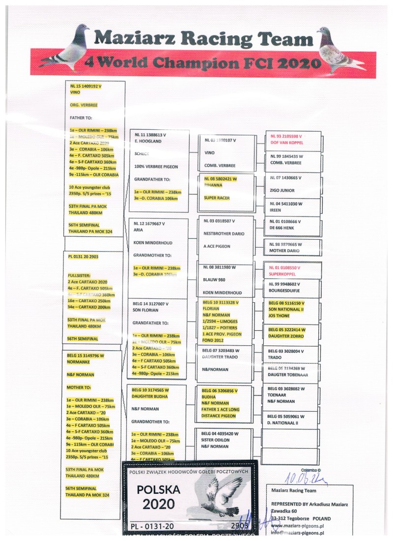 Oryginalny gołab z hodowli Maziarz Racing Team. Full siostra do 2 Asa Cartaxo 2020 r i 53 miejsce Finał Thajland Super zbudowana Samica po kuracjach gotowa do parowania Szczegóły pochodzenia w rodowodzie. Więcej informacji pod nr tel.: 883665660 *koszt transportu pokrywa kupujący