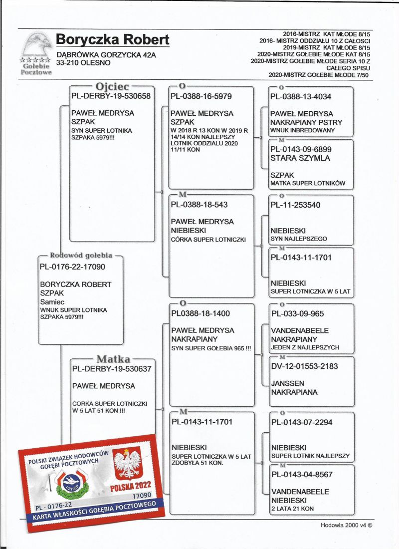 PL-0471-24-6455 - 100% P. Mędrysa linia Starej Szymli, Olimpijczyka 79, Olimpijki 750, szpaka 5979 TOP