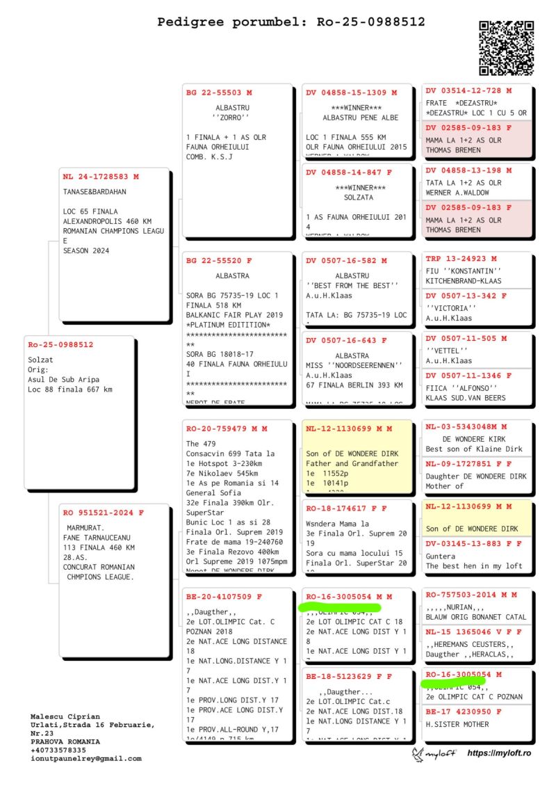 W rodowodzie występuje dwa razy Olimic 054 drugie miejsce Olimpiada kat C Poznań polecam do dalszej hodowli.