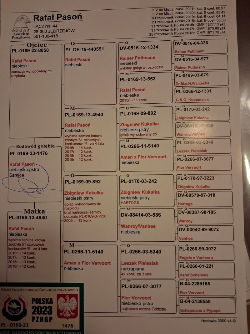 Oryginalny gołąb z hodowli Rafała Pasonia. Szczegóły pochodzenia w rodowodzie. Więcej informacji pod nr tel.: 785 632 087