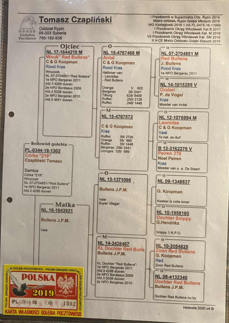 LIKWIDACJA HODOWLI Oryginalny gołąb z hodowli Tomasza Czaplińskiego. Szczegóły pochodzenia w rodowodzie. Więcej informacji pod nr tel.: 577 608 267