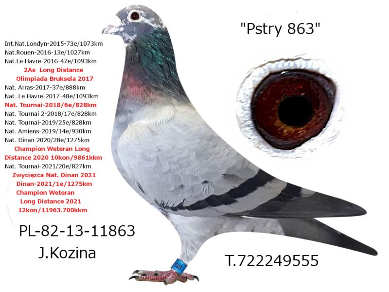SAMICA POCHODZI PO NAJLEPSZYM GOŁĘBIU W POLSCE W 2021 ROKU 12 KON POW.800km PRZELECIAŁ 11963.700kkm.