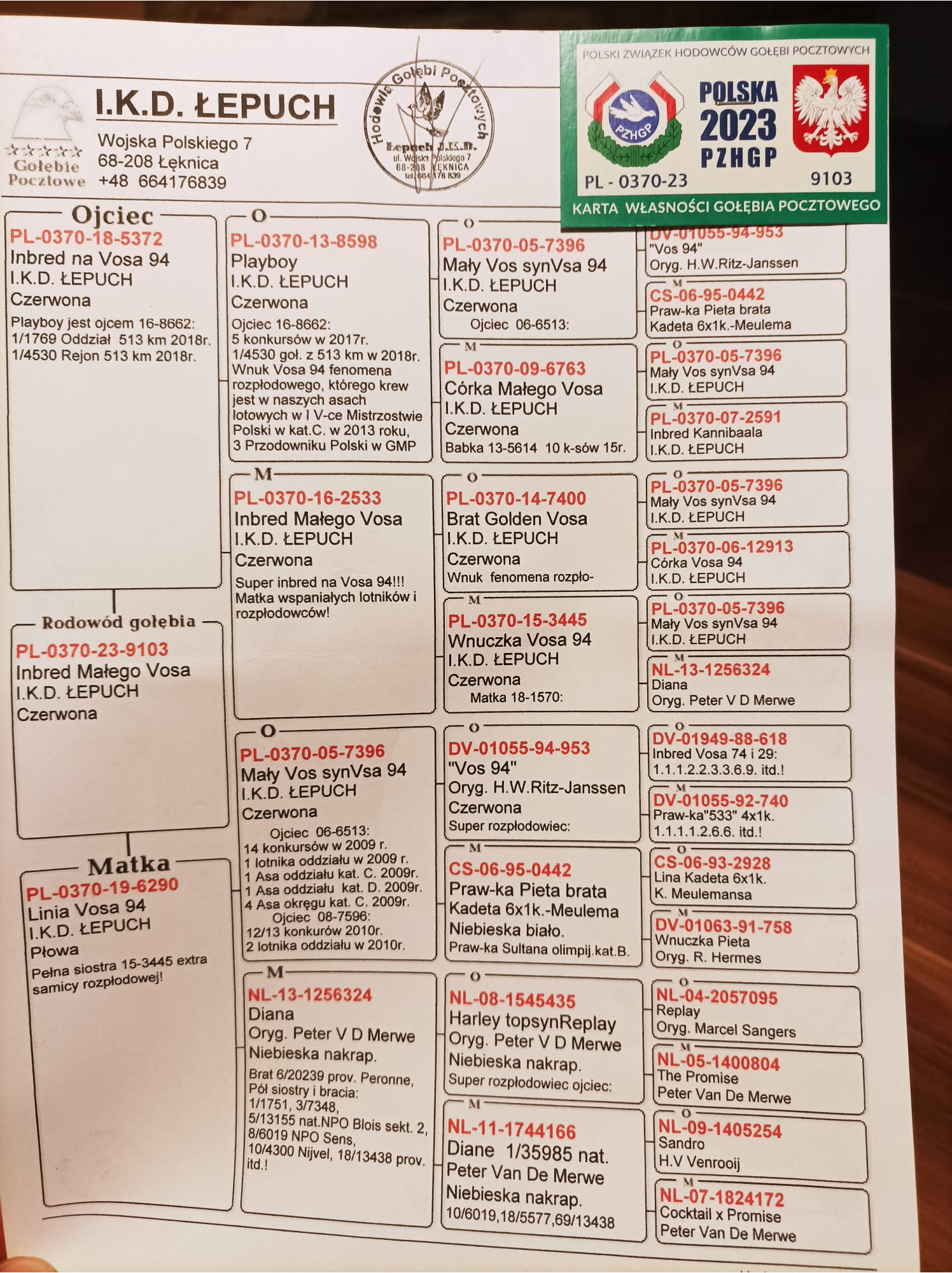 Oryginalny gołąb z hodowli Krzysztof i Igor Górski. Pełne rodzeństwo przelecialo cały program lotowy na MWG Carpatia. karta własności będzie dołączona do rodowodu. Szczegóły pochodzenia w rodowodzie. Więcej informacji pod nr tel.: 603 845 650 *odbiór osobisty lub wysyłka kurierem na koszt kupującego