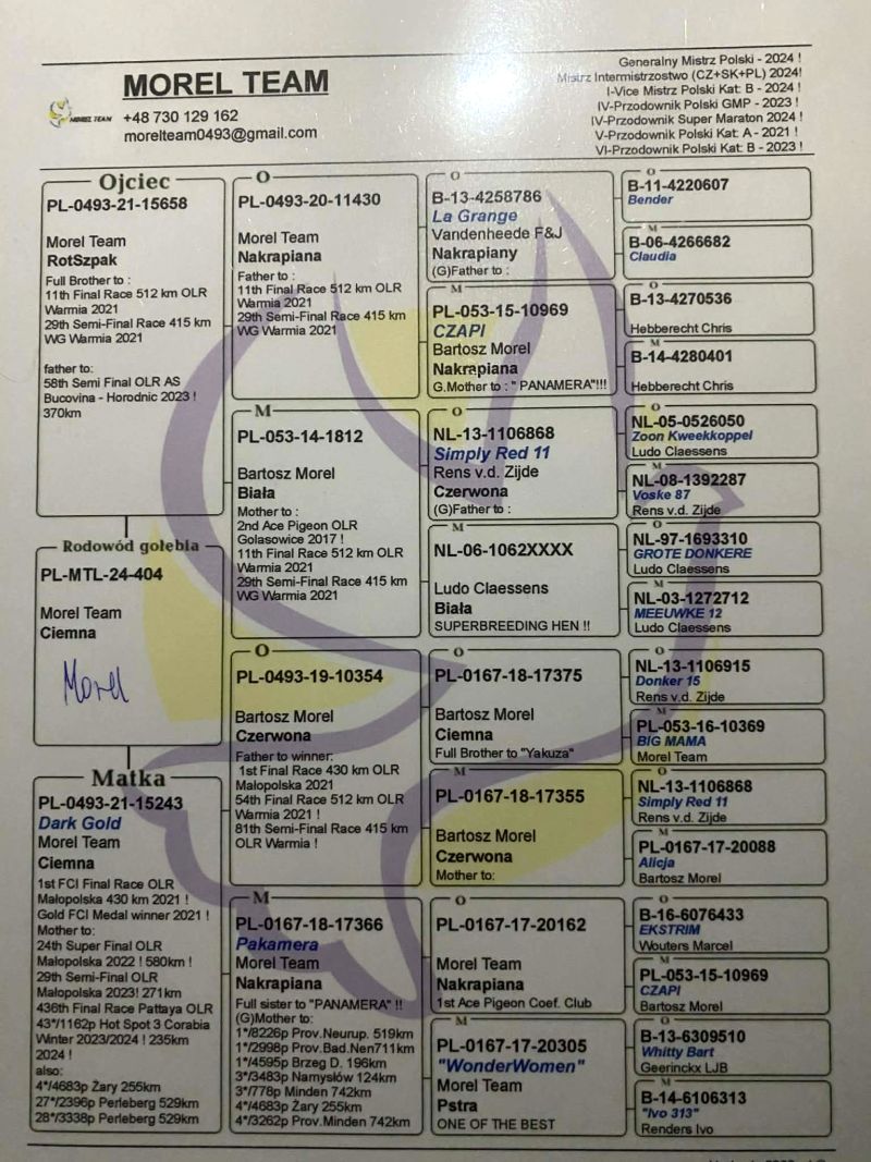 Oryginalny gołąb z hodowli Krzysztof i Igor Górski. Karta własności będzie dołączona do rodowodu. Szczegóły pochodzenia w rodowodzie. Więcej informacji pod nr tel.: 603 845 650 *odbiór osobisty lub wysyłka kurierem na koszt kupującego