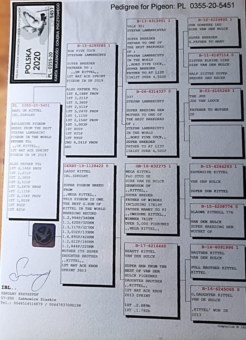 Oryginalny gołąb z hodowli Krzysztof i Igor Górski. Karta własności będzie dołączona do rodowodu. Szczegóły pochodzenia w rodowodzie. Więcej informacji pod nr tel.: 603 845 650 *odbiór osobisty lub wysyłka kurierem na koszt kupującego