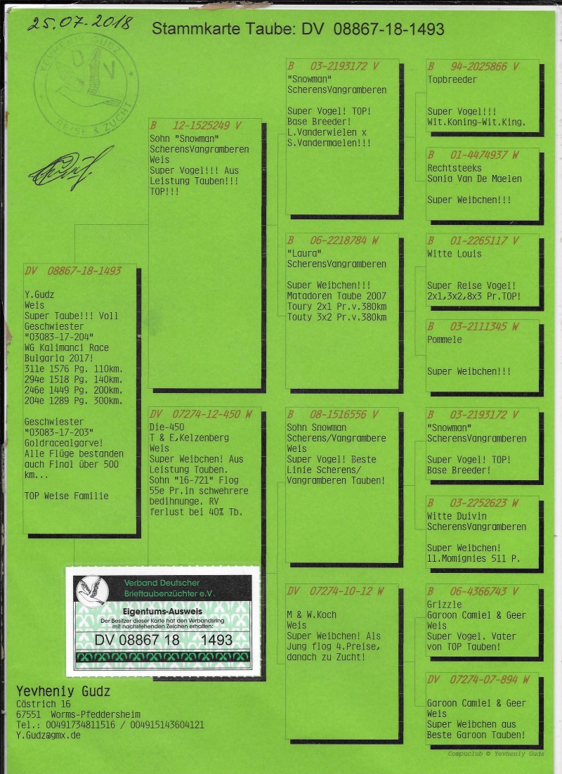 Oryginalny gołąb z hodowli Pawła Mikołajczaka. Szczegóły pochodzenia w rodowodzie. Więcej informacji pod nr tel.: 782069207 *wysyłka prywatnym kurierem