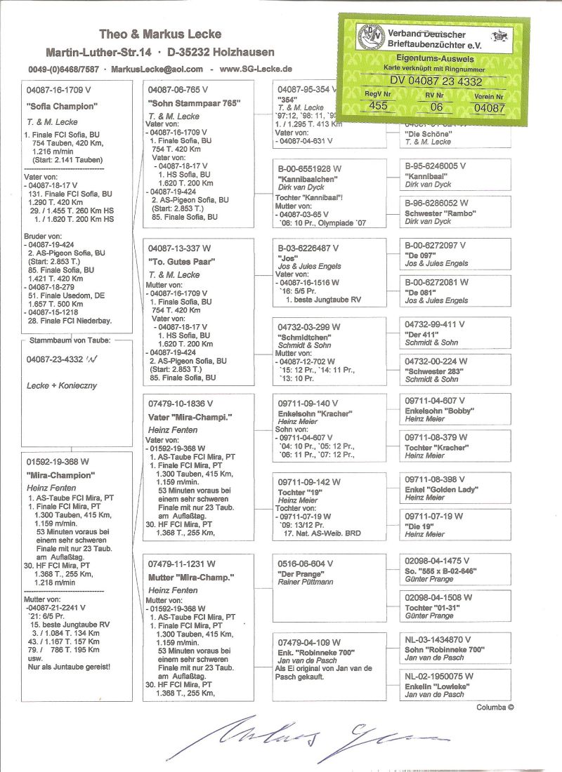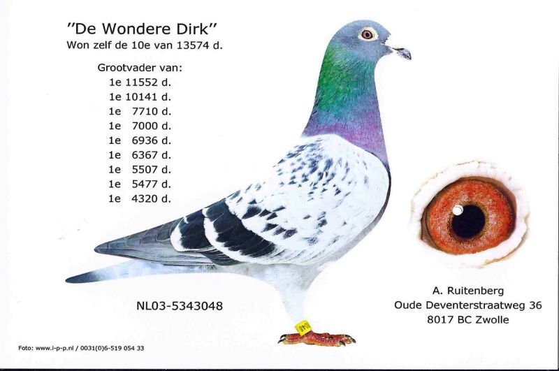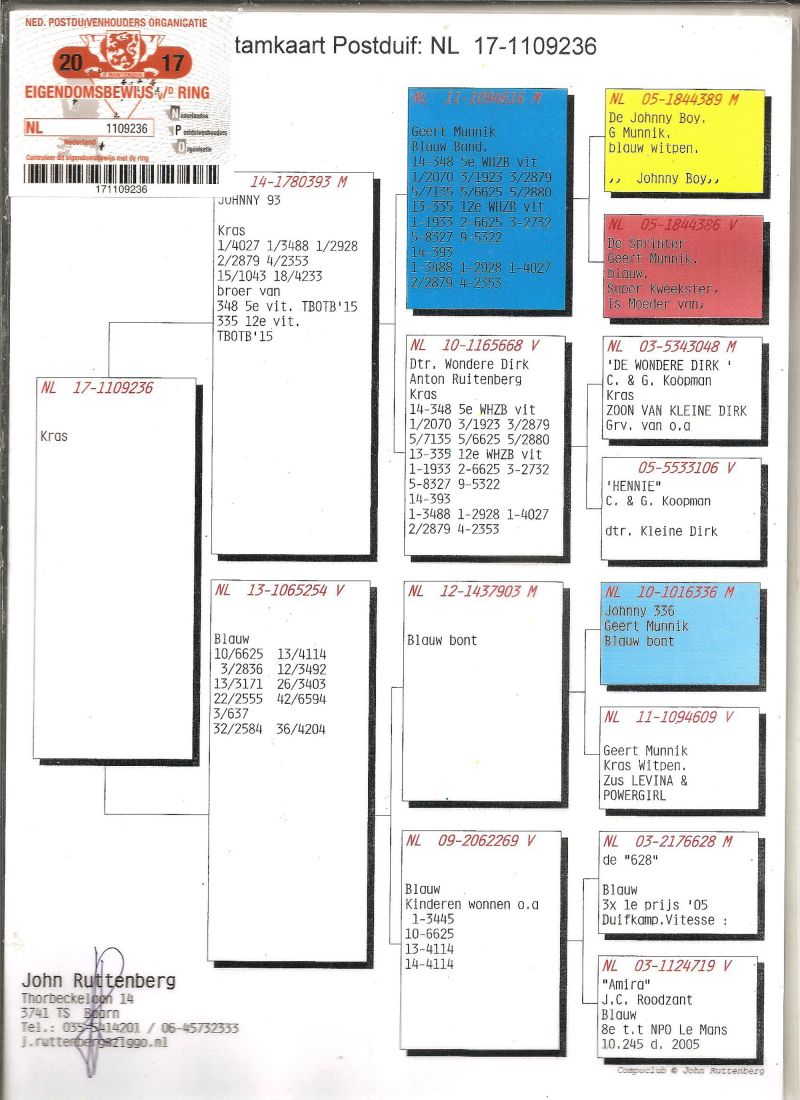 Matka córka zwycięzców WG SOFIA i MIRA, ojciec syn Johnny 93- super lotnik Johna Ruttenberga. Wnuk WONDERE DIRKA i JOHNNY BOYA Olimpijczyka Gerta Munnika. Szczegóły pochodzenia w rodowodzie i pod nr tel. 696 241 555