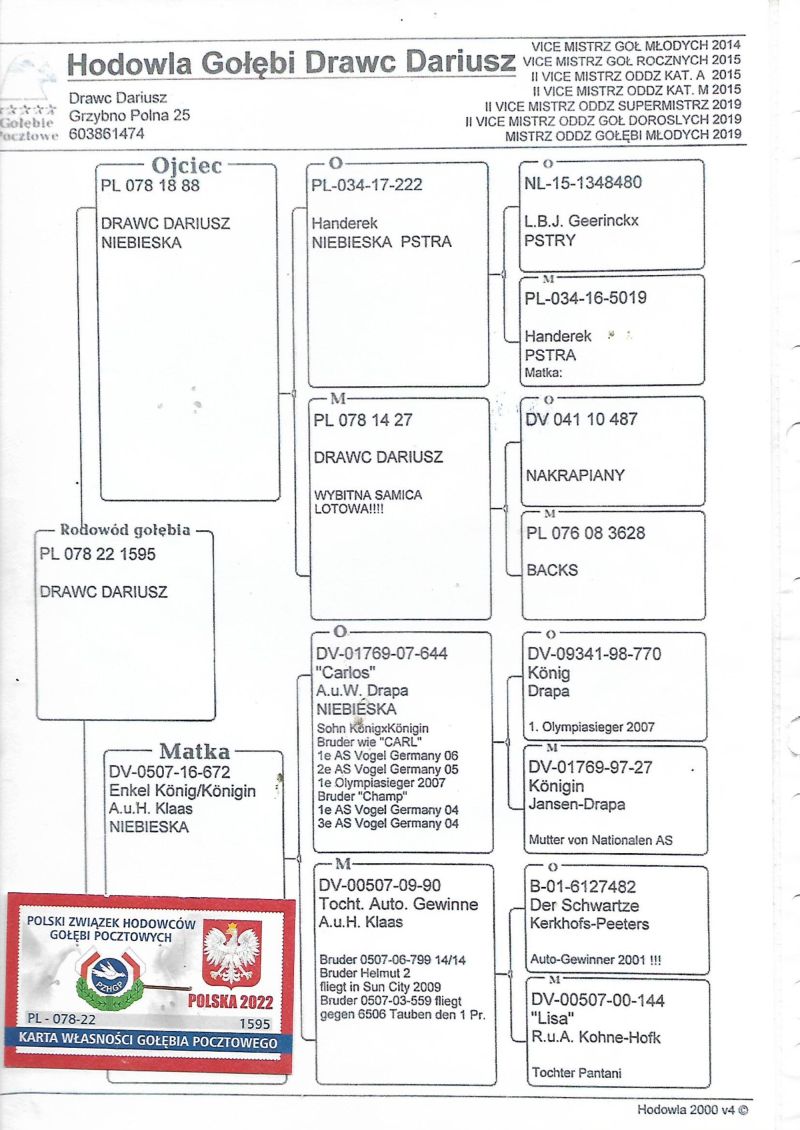 Z POWODU ZMIANY LOKALIZACJI GOŁĘBNIKA LIKWIDACJA GOŁĘBI RAZPŁODOWYCH.SAMCZYK DRAWC DARIUSZ LINIA GOŁĘBI HANDEREK- DRAPA-A&H KLAAS.MŁODE Z GOŁĘBNIKA ROZPŁODOWEGO WYWALCZYŁY W 2023/24/25 MISTRZ SEKCJI,W 2023 II PRZODOWNIK ODDZIAŁU,W 2024- I V-CE MISTRZ ODDZIAŁU,2025-I V-CE MISTRZ ODDZIAŁU.W 2024 II PRZODOWNIK OKRĘGU, 3 i 9 nagroda w kat F ZA STANDARTD NA WYSTAWIE OGÓLNOPOLSKIEJ.KOSZT WYSYŁKI POKRYWA KUPUJĄCY,PO WYGRANIU WPŁATA NA KONTO.POLECAM DO DALSZEJ HODOWLI.