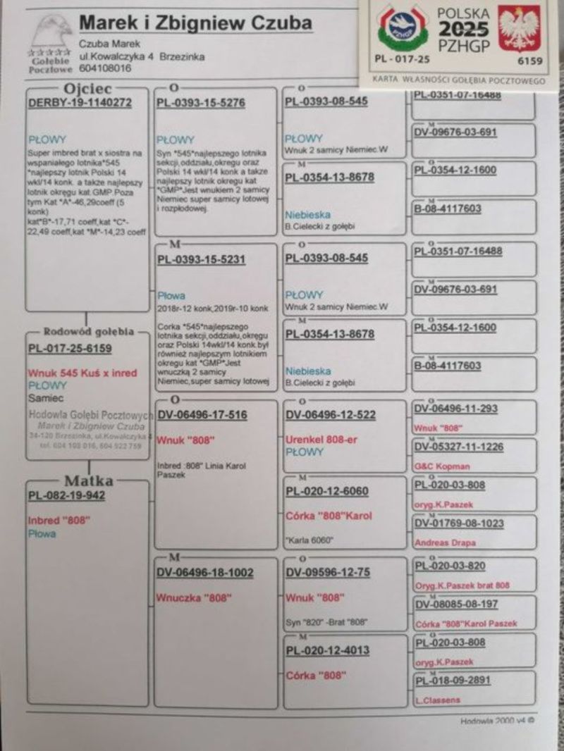 Płeć: młody gołąb Hodowca - rasa: Oryg Czuba Marek Zakończenie: 18.01.2026 godz. 19:20