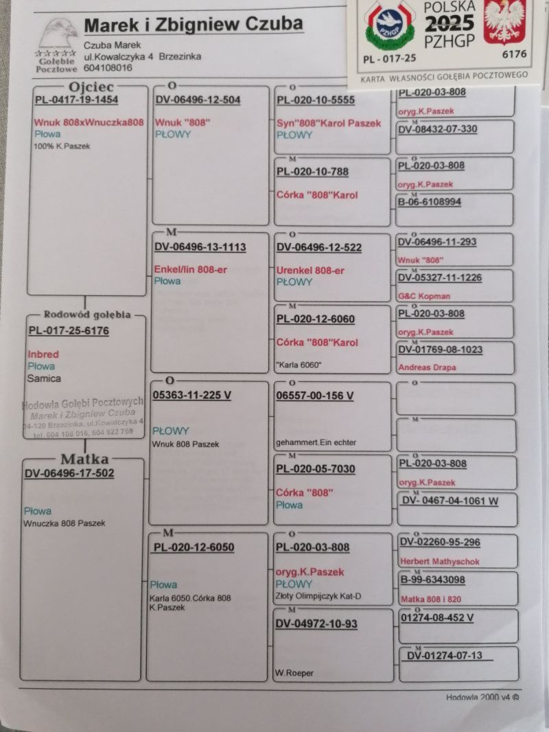 PL-017-25-6176 Inbred 808 x Wnuczka 808 K. Paszek