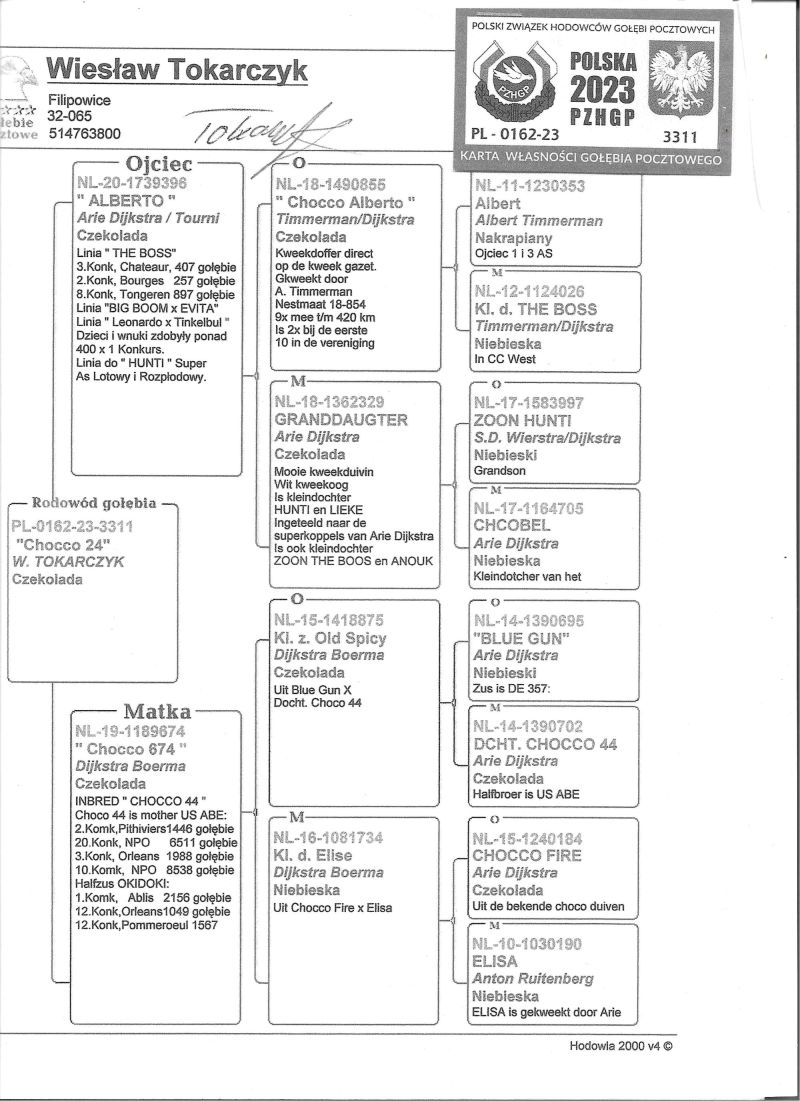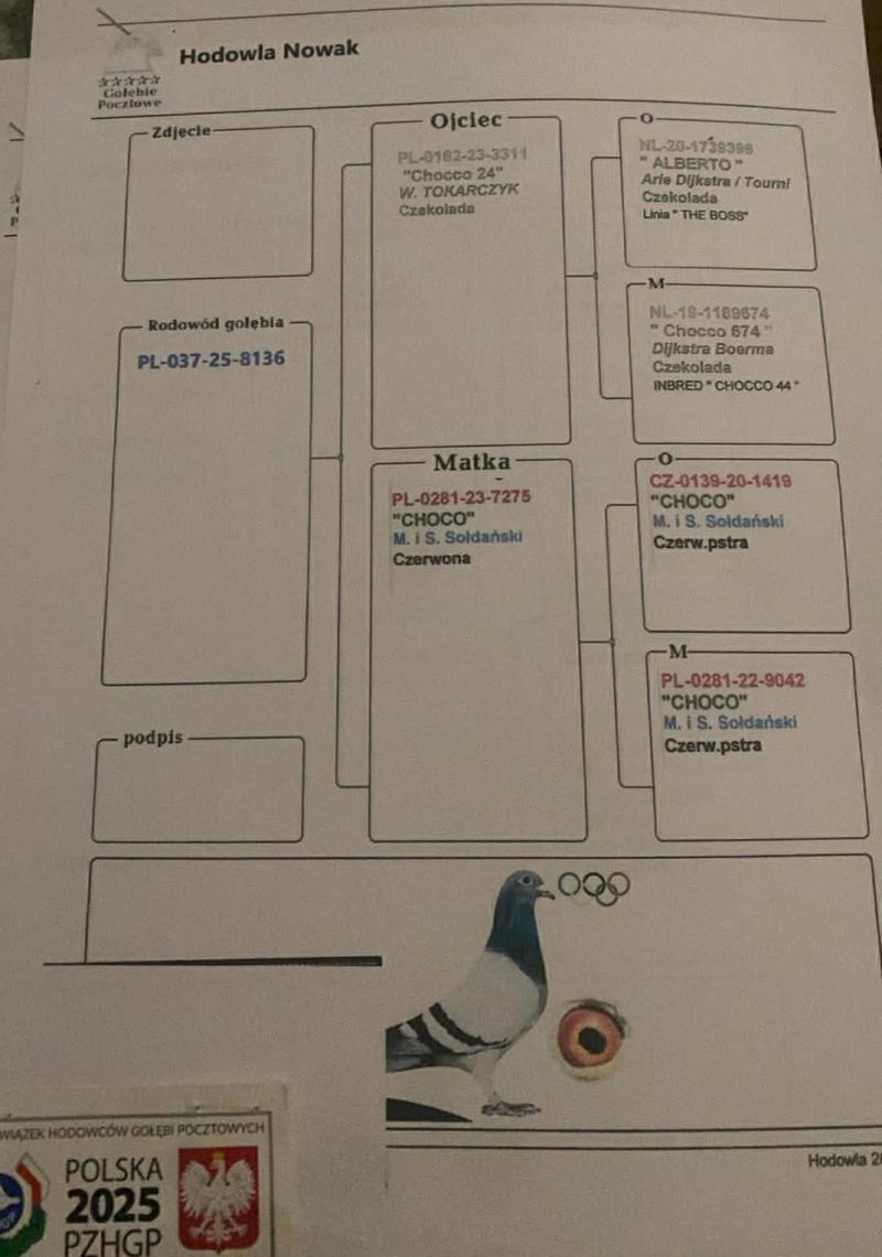 Samiczka z rocznika 2025 wywodzi sie z golebi Sołdański "Choco" Tokarczyk .
