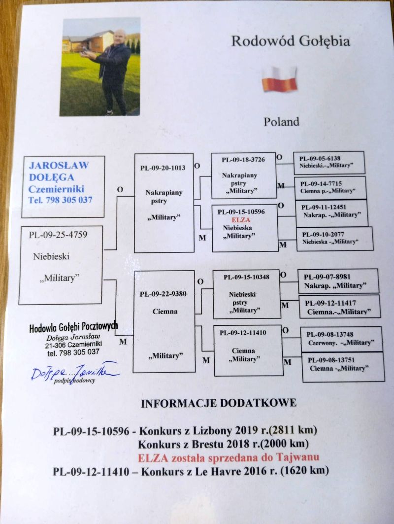Oryginalny gołab z hodowli Jarosław Dołęga Jest to gołąb młody z 2025 roku Szczegóły pochodzenia w rodowodzie. Więcej informacji pod nr tel.: 798305037. Możliwość wysyłki na terenie Polski.