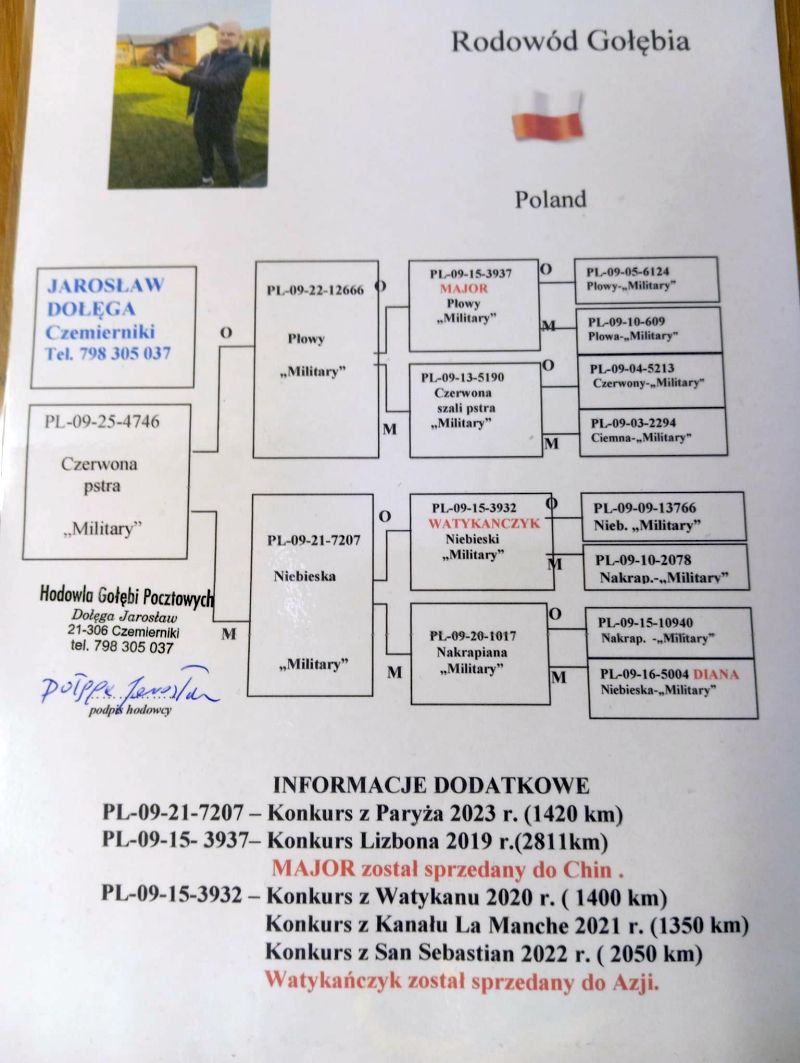 Oryginalny gołab z hodowli Jarosław Dołęga Jest to gołąb młody z 2025 roku Szczegóły pochodzenia w rodowodzie. Więcej informacji pod nr tel.: 798305037. Możliwość wysyłki na terenie Polski.