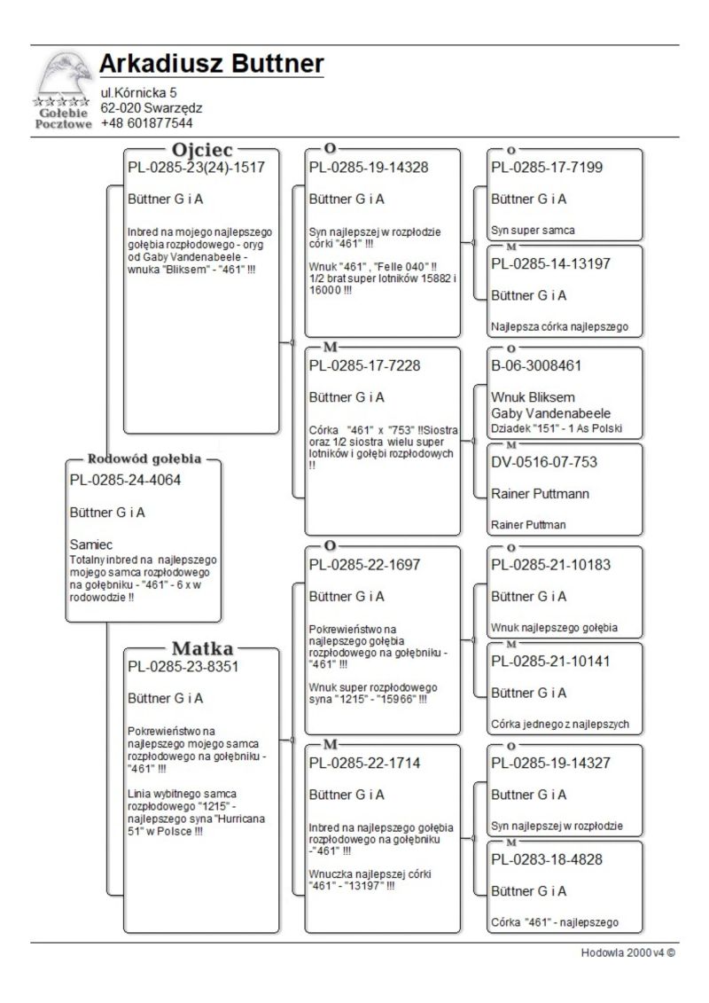 PL-0285-24-4064 Büttner G i A INBRED 461 - 6 X W RODOWODZIE