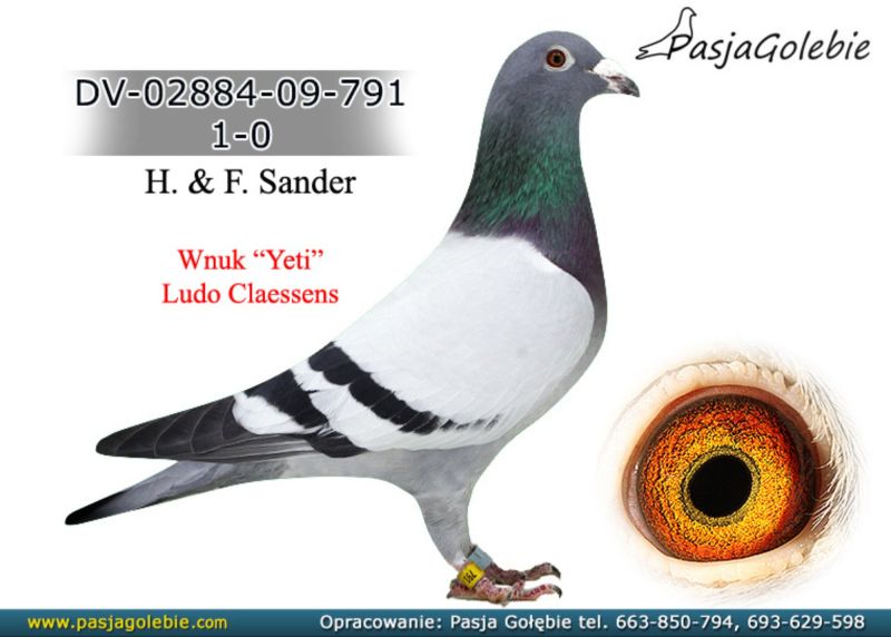 Wnuk super pary rozpłodowej Ludo Claessens - "791" x "870"(córka Meeuwke 12) ! Prawnuk "Margoux" - super wdowy u H & L Sioen !! Linia "Cameron" - 2 x 1 Narodowy !!! "791" - ojciec "ZigZag McQueen" - 117 poz w finale SAMDPR , ojciec "Lotniskowej" , najlepszej samicy rozpłodowej u Kol Krzyśka Kusia oraz dziadek 8755 - rezerwa na olimpiadę w kat olimpijskiej maraton oraz ojciec , dziadek i pradziadek wielu wybitnych gołębi rozpłodowych i lotowych na wielu gołębnikach !! "870" - matka 14196 - 2 as oddz kat A , 8701 - ojciec 2 x 10 gołąb z finału WG Kuźnica 2015 i 2016 , i wielu wielu innych innych.Babka 1 gołębia z finału WG Podhale 2024 dla Kol. Bogdana Bieli. Babka super samca rozpłodowego u Kol Jacka Orszulika, matka "17915" - wybitna samica rozpłodowa - babka dwóch mega lotników na PLGP u Kol Krzysztofa Mrowieca oraz babka 2 super samic Lotowych u Kol Kazimierza Goździejewskiego ( jedna w kat M w 2023 roku miała coeff 4,84 a druga w 2024 roku 2,58 - 2 x 1 na oddział - w kat "I" - coeff 9 z haczykiem) od 2017 roku 30x mistrzostwo oddz w różnych kategoriach w tym 2019-2021 3 x z rzędu supermistrzostwo oddziału Poznań, więcej lub 601 877 544