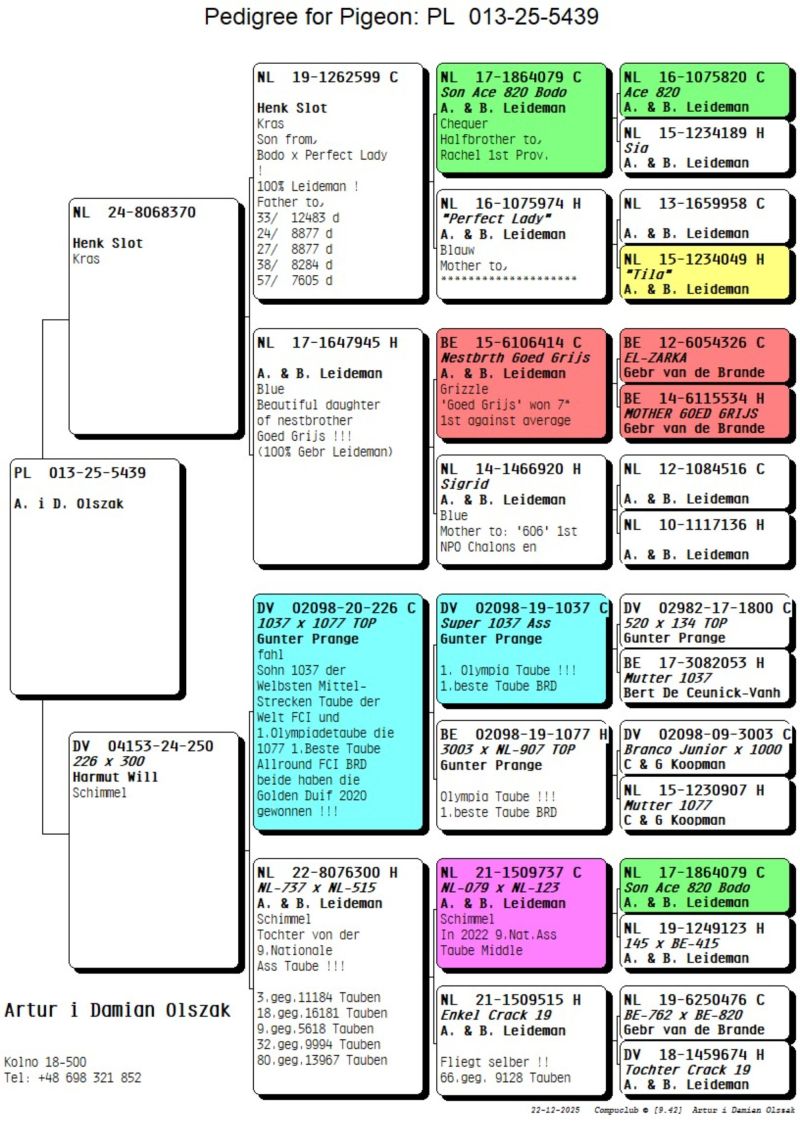 Płeć: młody gołąb Hodowca - rasa: Oryg. Artur i Damian Olszak Zakończenie: 18.01.2026 godz. 20:24