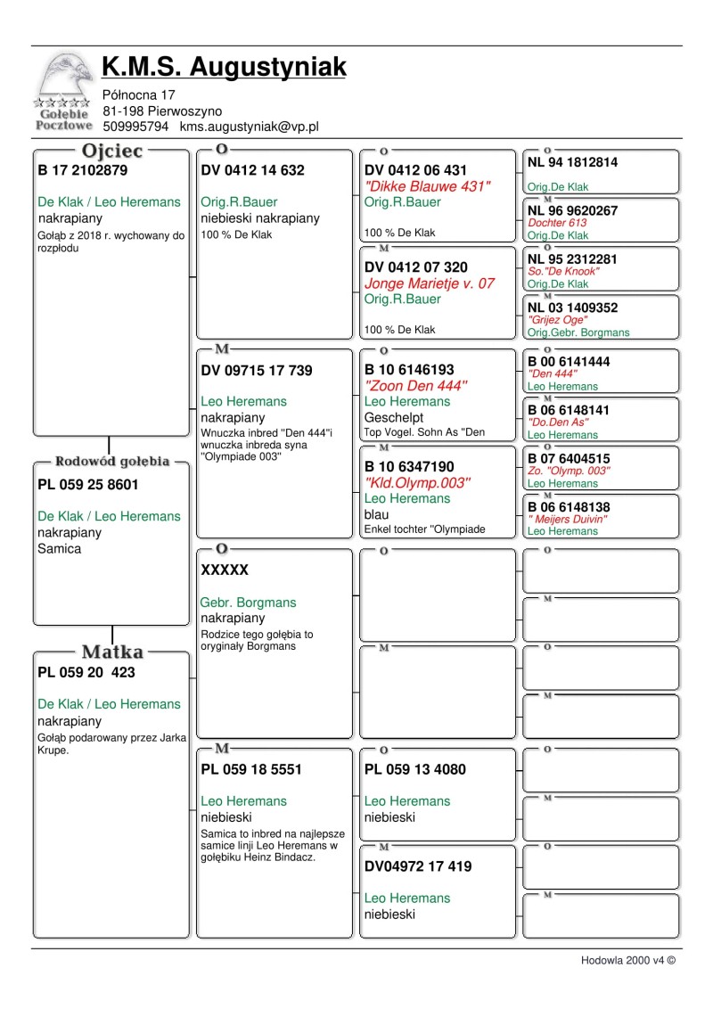 Oryginalny gołąb z hodowli KMS Augustyniak. Szczegóły pochodzenia w rodowodzie. Więcej informacji pod nr. tel. 509 995 794