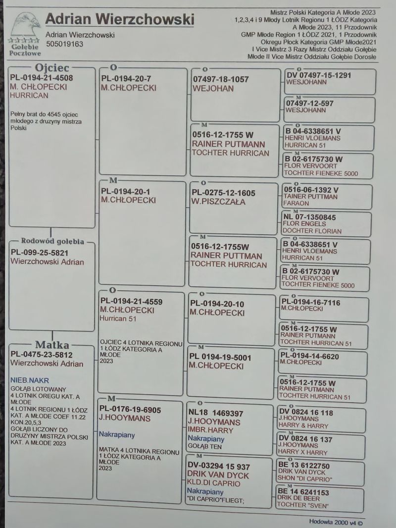 Płeć: młody gołąb Hodowca - rasa: Wierzchowski Adrian Zakończenie: 19.01.2026 godz. 19:36