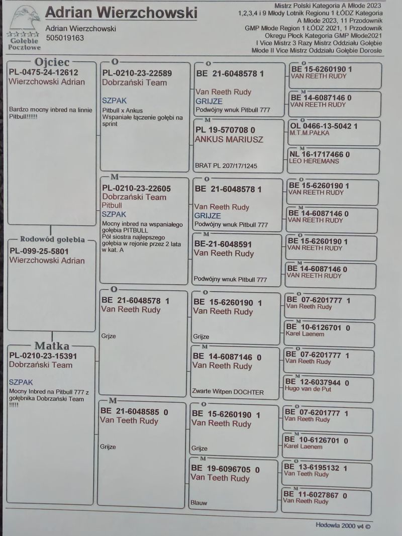 Płeć: młody gołąb Hodowca - rasa: Wierzchowski Adrian Zakończenie: 19.01.2026 godz. 19:27