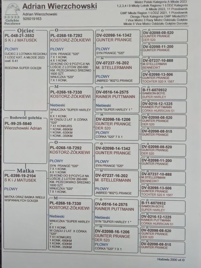 Płeć: młody gołąb Hodowca - rasa: Wierzchowski Adrian Zakończenie: 19.01.2026 godz. 19:21