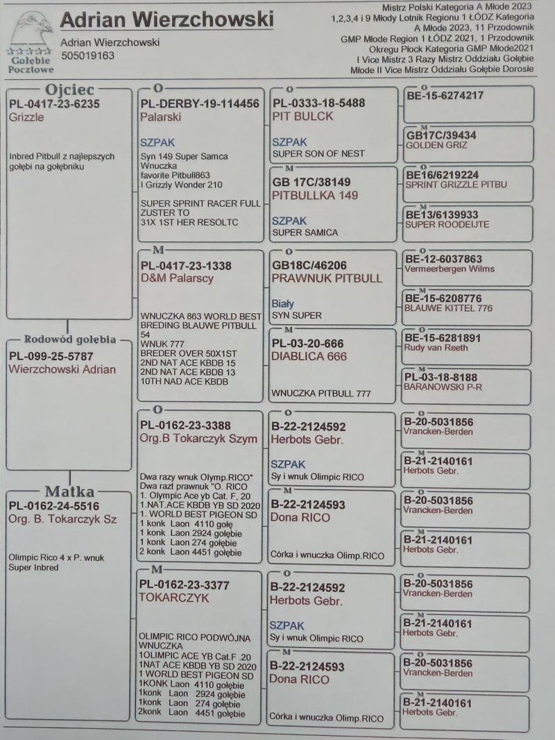 Płeć: młody gołąb Hodowca - rasa: Wierzchowski Adrian Zakończenie: 19.01.2026 godz. 19:09