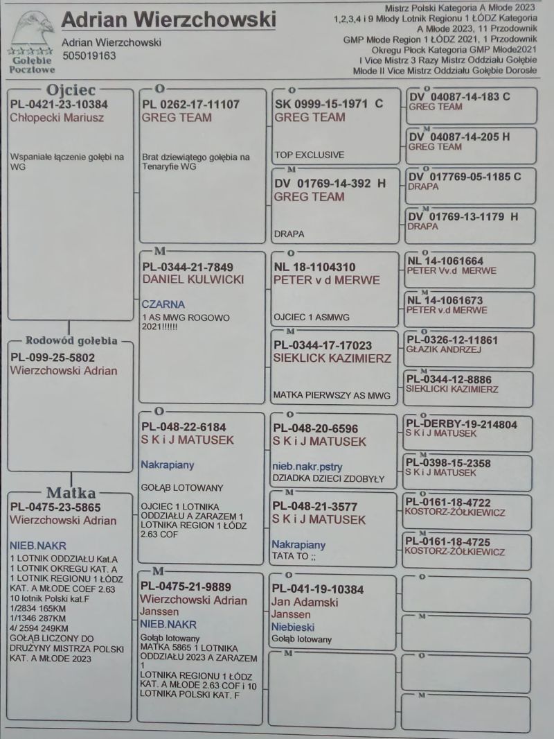 Płeć: młody gołąb Hodowca - rasa: Wierzchowski Adrian Zakończenie: 19.01.2026 godz. 19:06
