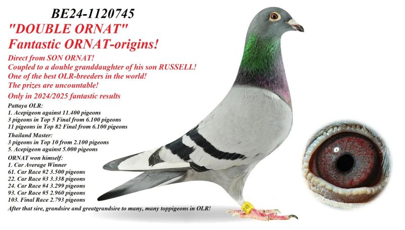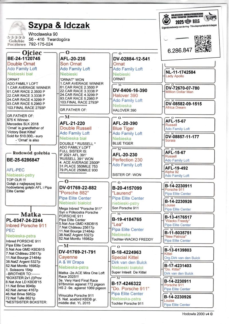 Profesjonalna hodowla z wieloletnim doświadczeniem, posiadająca w swoim stadzie materiał najwyższej światowej klasy. Więcej informacji w załączonych materiałach oraz pod nr tel. 792-175-024 Oferowany gołąb to prawdopodobnie SAMIEC. Płeć pisana orientacyjnie Wysyłka 100 zł