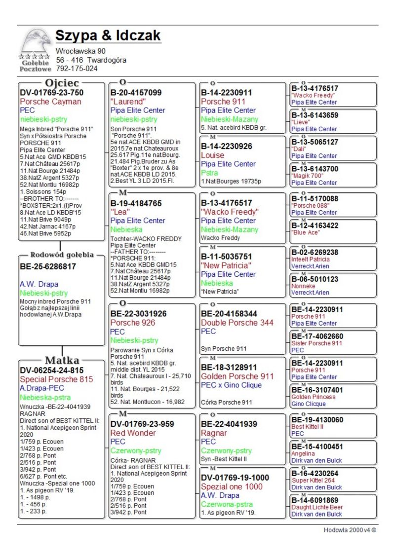 Profesjonalna hodowla z wieloletnim doświadczeniem, posiadająca w swoim stadzie materiał najwyższej światowej klasy. Więcej informacji w załączonych materiałach oraz pod nr tel. 792-175-024 Oferowany gołąb to prawdopodobnie SAMIEC. Płeć pisana orientacyjnie Wysyłka 100 zł