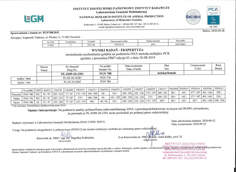 Płeć: samiec Hodowca - rasa: oryg. Tadeusz Kapturski Zakończenie: 18.01.2026 godz. 20:42