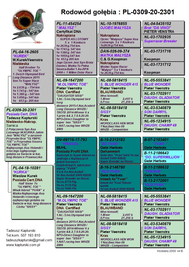 Oryginalny gołąb z hodowli Tadeusza Kapturskiego. Szczegóły pochodzenia w rodowodzie. Więcej informacji pod nr tel.: 507183810 *transport kurier 165 zł