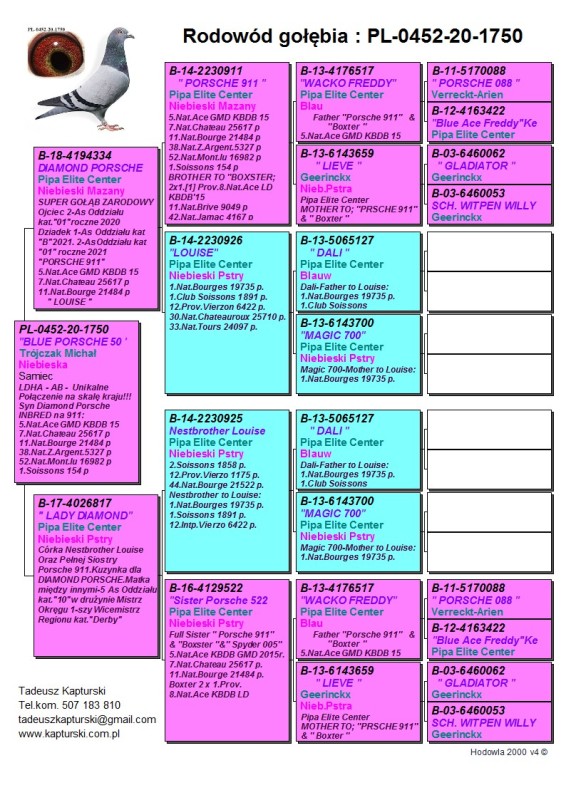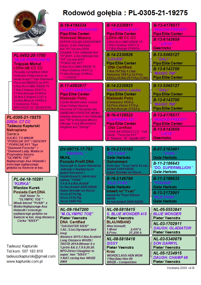 Oryginalny gołąb z hodowli Tadeusza Kapturskiego. Szczegóły pochodzenia w rodowodzie. Więcej informacji pod nr tel.: 507183810 *transport kurier 165 zł