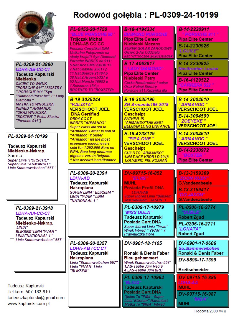 Oryginalny gołąb z hodowli Tadeusza Kapturskiego. Szczegóły pochodzenia w rodowodzie. Więcej informacji pod nr tel.: 507183810 *transport kurier 165 zł